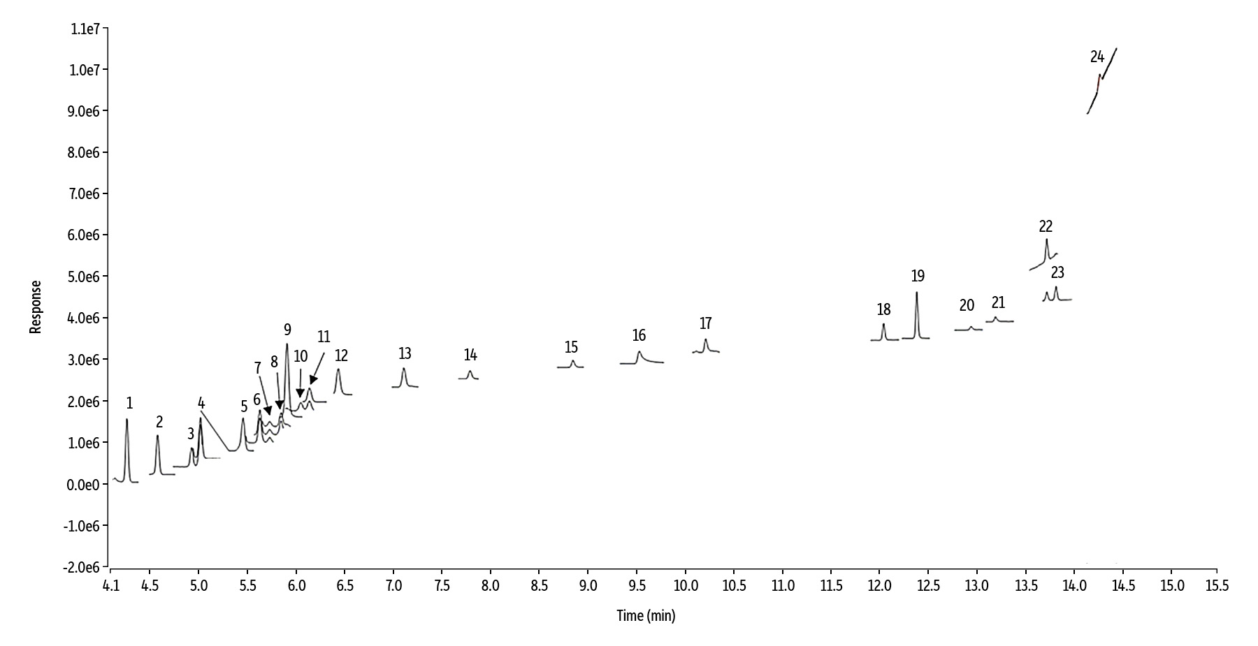 | Oven | 80 °C to 130 °C at 20 °C/min (hold 4 min) to 275 °C at 17 °C/min (hold 0.47 min) |