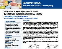 For the analysis of 25-hydroxyvitamin D, a precursor of vitamin D, the combination of solid-phase extraction (SPE) with subsequent HPLC-MS/MS analysis is key to success. Due to the high number of samples in clinical diagnostics, an automated sample preparation is needed. For this purpose, MACHEREY-NAGEL has developed an automated sample preparation in 96-well format on an Eppendorf epMotion® 5075vt robot. CHROMABOND® HLB proved to be ideal as sorbent for analyte enrichment. High recoveries and good reproducibilities could be achieved.