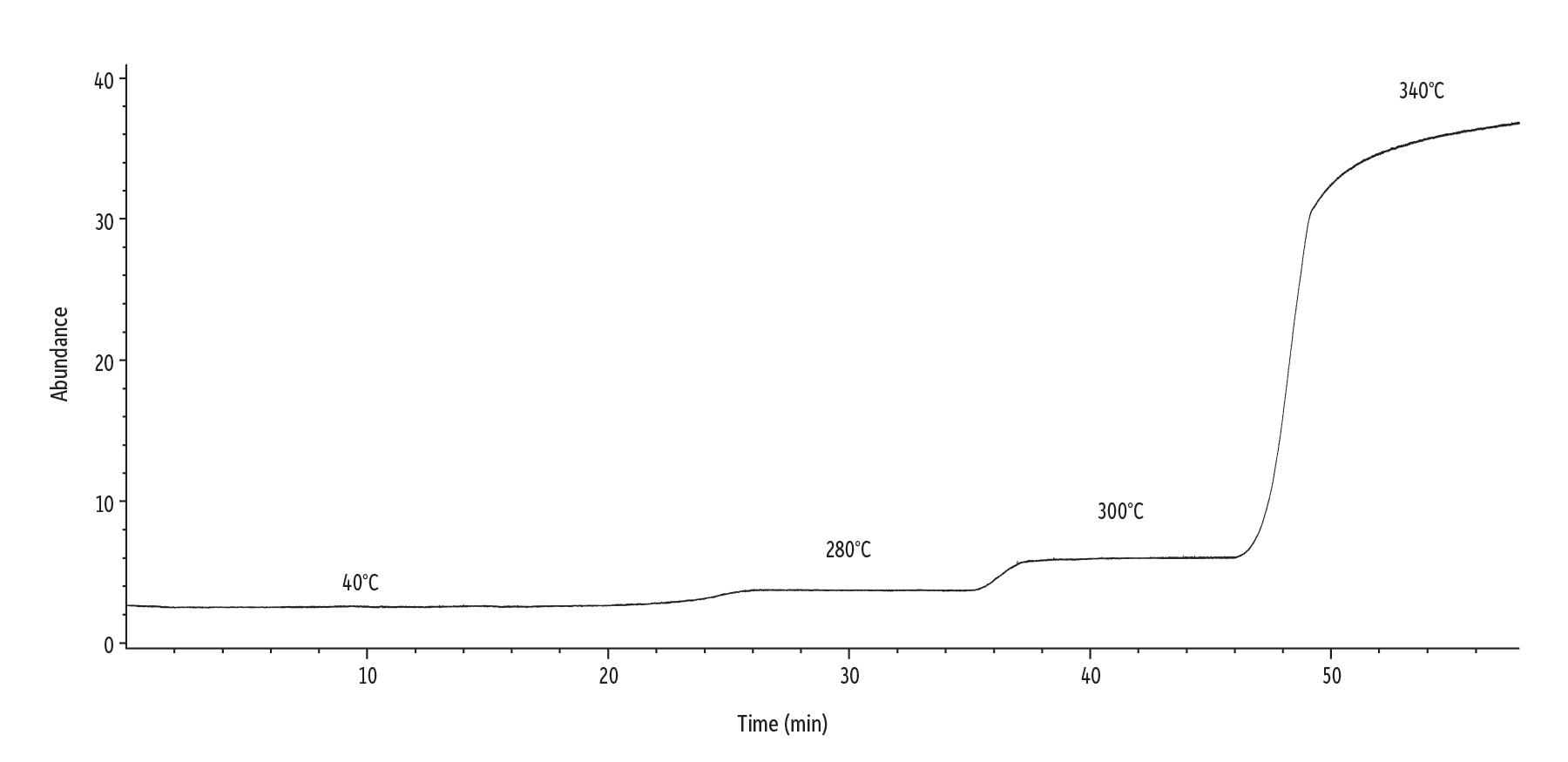| Oven Temp.: | 40 °C to 280 °C at 10 °C/min (hold 10 min) to 300 °C at 20 °C/min (hold 10 min) to 340 °C at 20 °C/min (hold 10 min) |