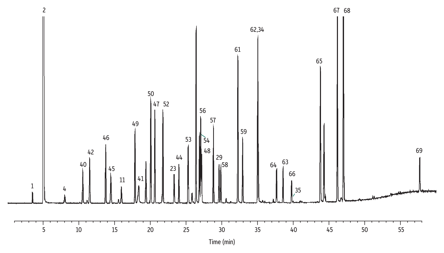 Figure 6: Rtx-200 columns can quickly and accurately analyze a wide variety of common solvents.
